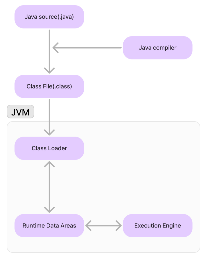 Class Loader를 통해서 컴파일된 바이트코드를 JVM Runtime Data Area로 로딩한다.