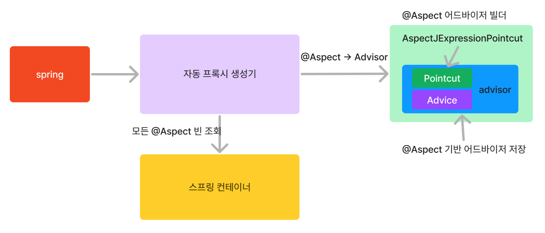 2. 자동 프록시 생성기는 스프링 컨테이너에서 @Aspect 어노테이션이 붙은 스프링 빈을 모두 조회