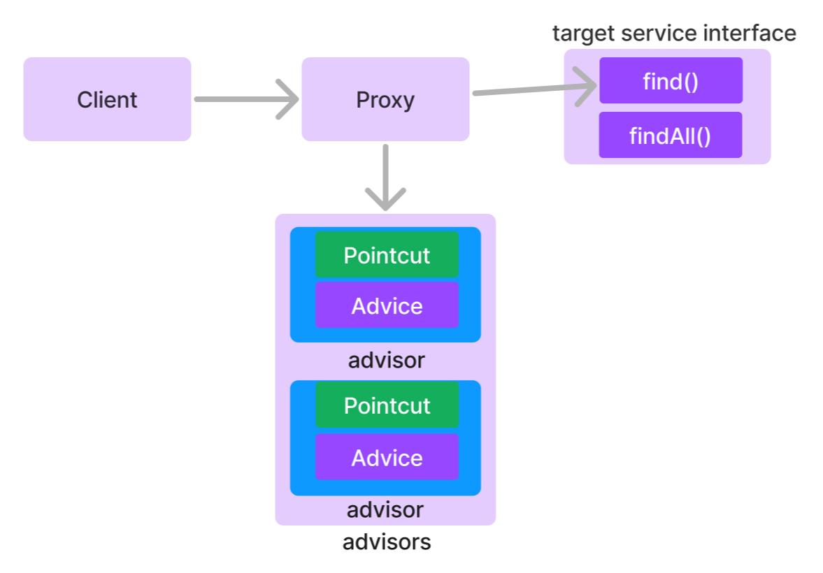 하나의 프록시로 여러 advisor들을 포함하는 것이 가능하다. 그래서 하나의 객체에 여러 advisor의 pointcut이 포함되어도 하나의 프록시만 생성한다.