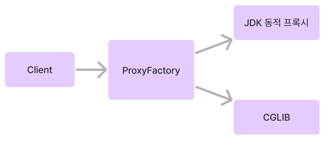 JDK 동적 프록시와 CGLIB는 InvocationHandler와 MethodInterceptor를 각각 만들어 프록시를 만든다. 우리는 프록시를 구현할때 매번 인터페이스인지 클래스인지 확인하고 어떤것을 구현해야하는지 생각해야한다. 이것을 줄이는 방법은 없을까?