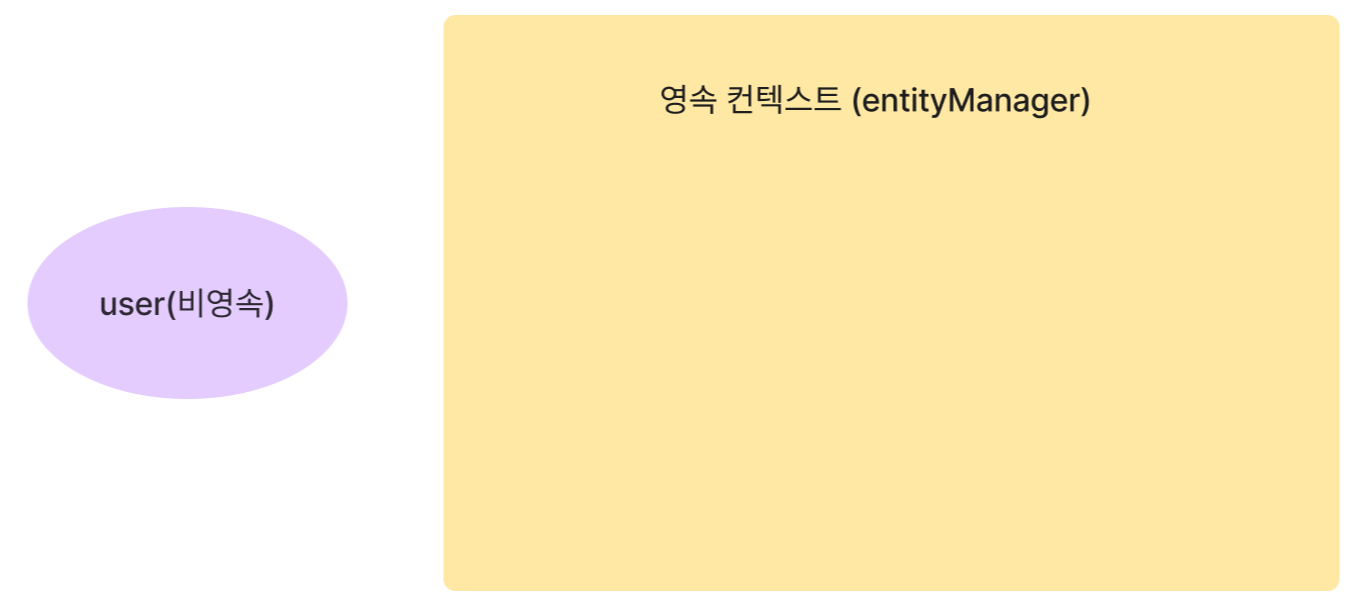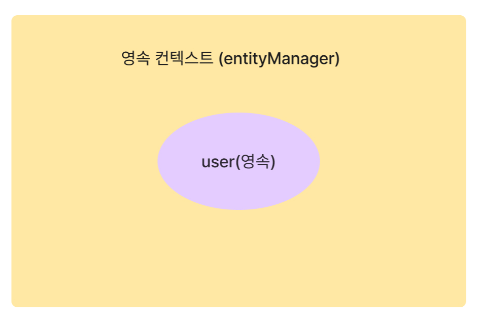 코드를 그림으로 표현하면 영속상태는 user 엔티티가 영속성 컨텍스트에 의해 관리되는 위 그림처럼 표현된다.