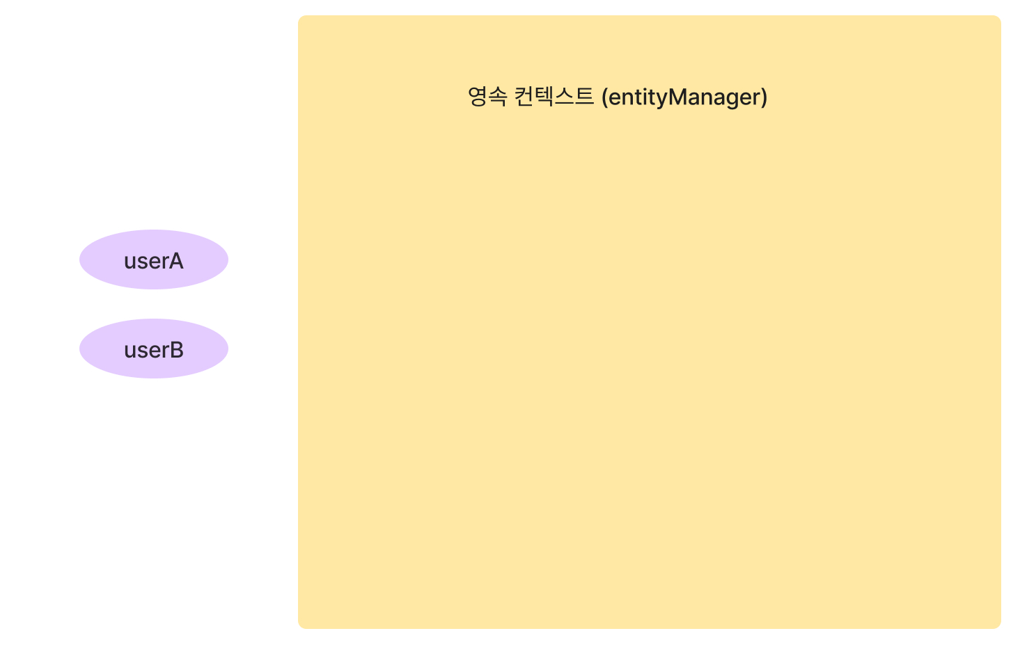 위 그림처럼 clear 하면 영속성 컨텍스트에 정보를 모두 제거 즉 초기화하는 것과 같다. 그래서 위 코드에 user.setUsername("userA")는 변경 감지가 동작하지 않아서 데이터 베이스에 반영하지 않는다.