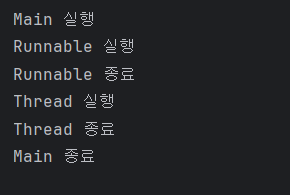 위 코드의 실행 결과이다. 뭔가 이상하다. 나는 Thread를 실행시켰고 일부러 1000ms의 시간을 두어 main이 가장 먼저 종료가 될 거라 예상했다. 하지만 runnable > thread > main순으로 종료가 되었다. 왜 이런 결과가 나올까?