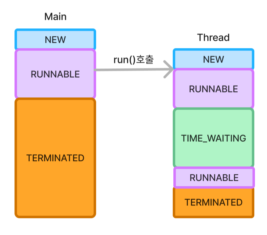 - Timed Waiting : 일정 시간 동안 기다리는 상태이다.